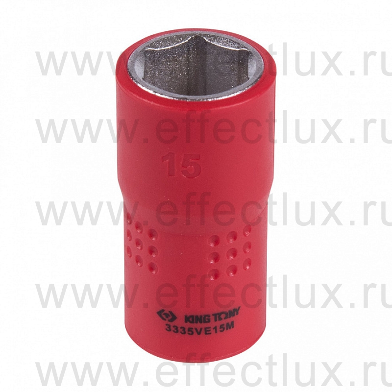 Каталог > KING TONY® Профессиональный слесарно-монтажный инструмент > Электро-изолированный инструмент VDE > Головки торцевые шестигранные и аксессуары VDE > Головки торцевые шестигранные VDE 3/8" > 3335VE15M Головка торцевая диэлектрическая шестигранная 3/8", 15 мм.