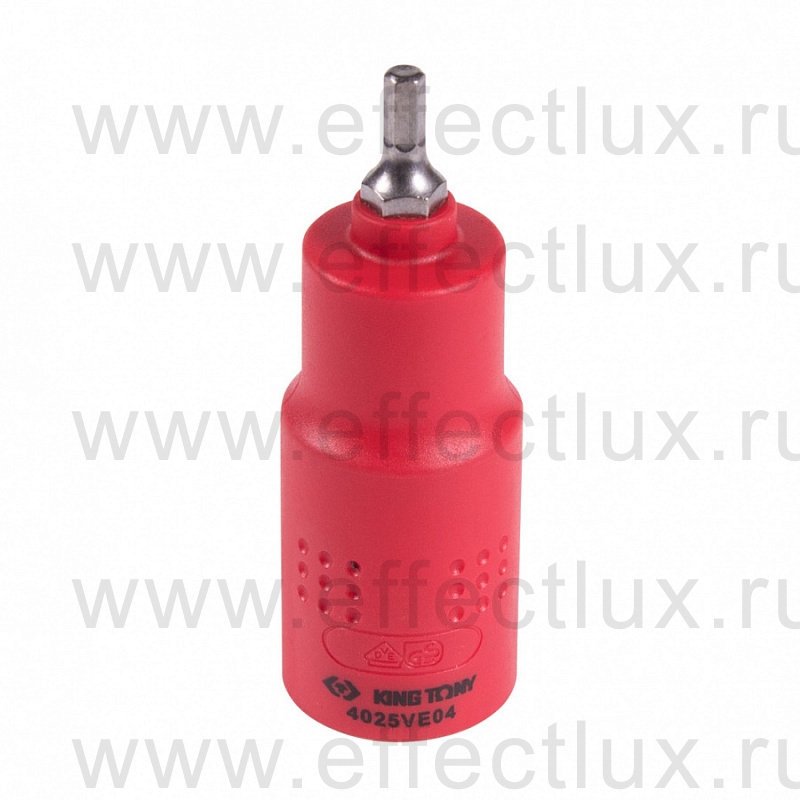 Каталог > KING TONY® Профессиональный слесарно-монтажный инструмент > Электро-изолированный инструмент VDE > Головки торцевые шестигранные и аксессуары VDE > Торцевые головки VDE с отвёрточной вставкой hex 1/2" > 4025VE04 Торцевая головка с отвёрточной вставкой диэлектрическая 1/2", HEX, 4 мм., L = 75 мм.