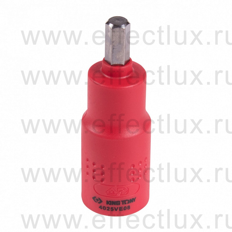 Каталог > KING TONY® Профессиональный слесарно-монтажный инструмент > Электро-изолированный инструмент VDE > Головки торцевые шестигранные и аксессуары VDE > Торцевые головки VDE с отвёрточной вставкой hex 1/2" > 4025VE08 Торцевая головка с отвёрточной вставкой диэлектрическая 1/2", HEX, 8 мм., L = 75 мм.