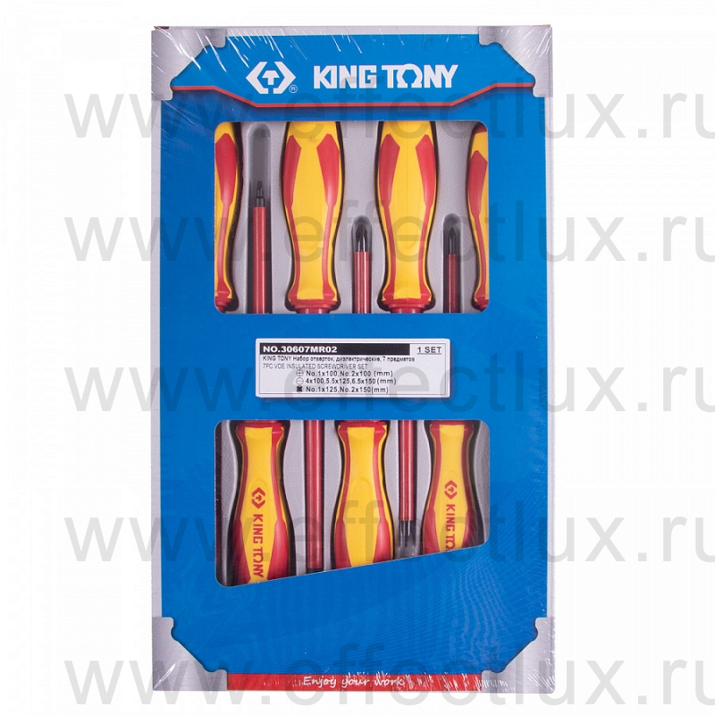 Каталог > KING TONY® Профессиональный слесарно-монтажный инструмент > Электро-изолированный инструмент VDE > Наборы VDE инструментов > 30607MR02 Набор отверток, диэлектрических SL+PH+RB, 7 предметов