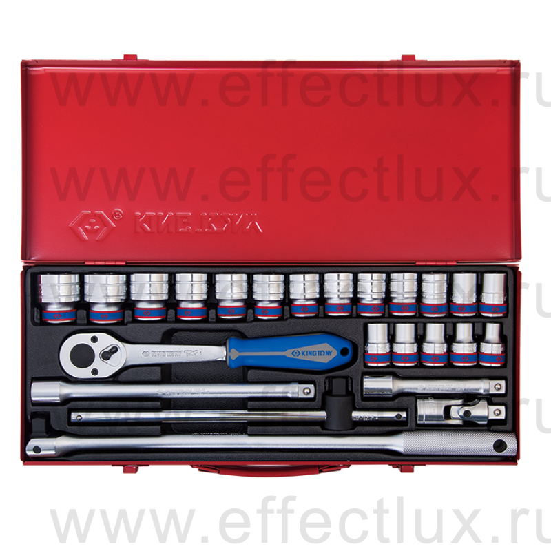 KING TONY® НАБОР ТОРЦЕВЫХ ГОЛОВОК С ПРИНАДЛЕЖНОСТЯМИ 1/2", двенадцатигранные, 10-32 ММ, 24 ПРЕДМЕТА