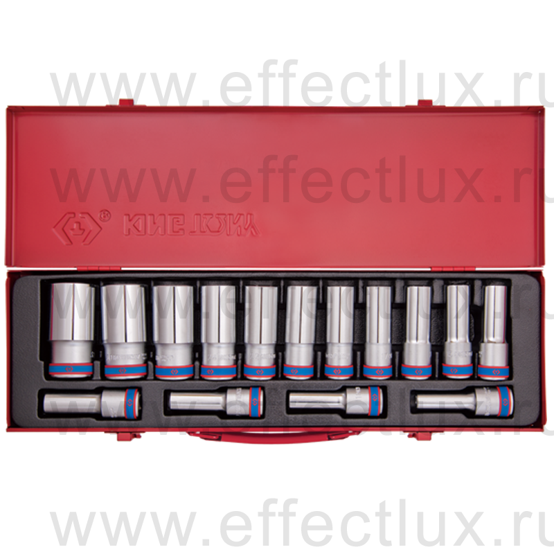 KING TONY® НАБОР удлинённых ТОРЦЕВЫХ ГОЛОВОК 1/2", шестигранных, 10-32 мм., 15 предметов