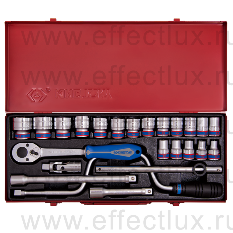 KING TONY® НАБОР ТОРЦЕВЫХ ГОЛОВОК С ПРИНАДЛЕЖНОСТЯМИ 1/2", шестигранные, 10-32 мм., 24 предмета