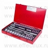 Основная особенность набора – его комплектация как метрическим, так и дюймовым форматом размерности головок и ключей. Дюймовая размерность (inch, 1 дюйм = 25,4 мм; обозначение размера кавычкой, к примеру, 1/2", 7/8") в основном используется в крепеже деталей и узлов механизмов автомобилей американского производства. Поставляется в металлическом кейсе.