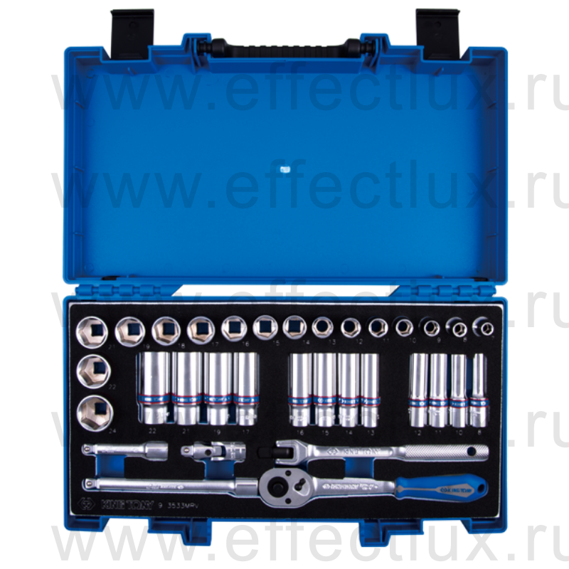 Каталог > KING TONY® Профессиональный слесарно-монтажный инструмент > Торцевые головки и принадлежности > Торцевые головки и принадлежности с приводом 3/8" > Наборы торцевых головок с приводом 3/8" > 3533MRV Набор торцевых головок с принадлежностями 3/8", шестигранные, 7-24 мм., 33 предмета