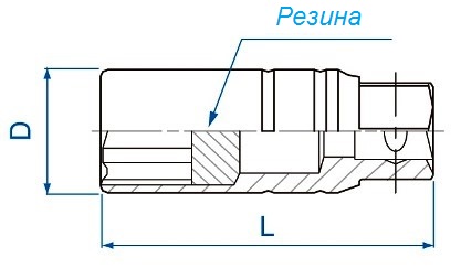 363516 Головка свечная шестигранная 3/8", 16 мм., L = 70 мм., резиновый фиксатор