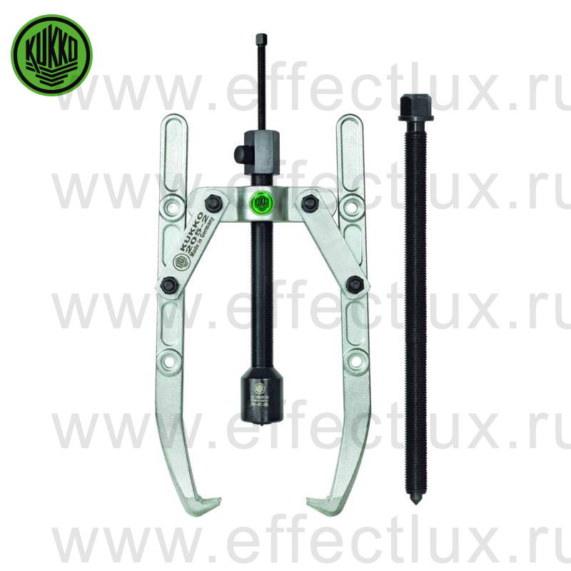 KUKKO Серия 205-B Универсальный двух-захватный съёмник с шарнирными захватами, регулировкой глубины фиксации и длинным гидравлическим шпинделем (включая механический шпиндель) 220х26-250 мм. Артикул: 205-02-B