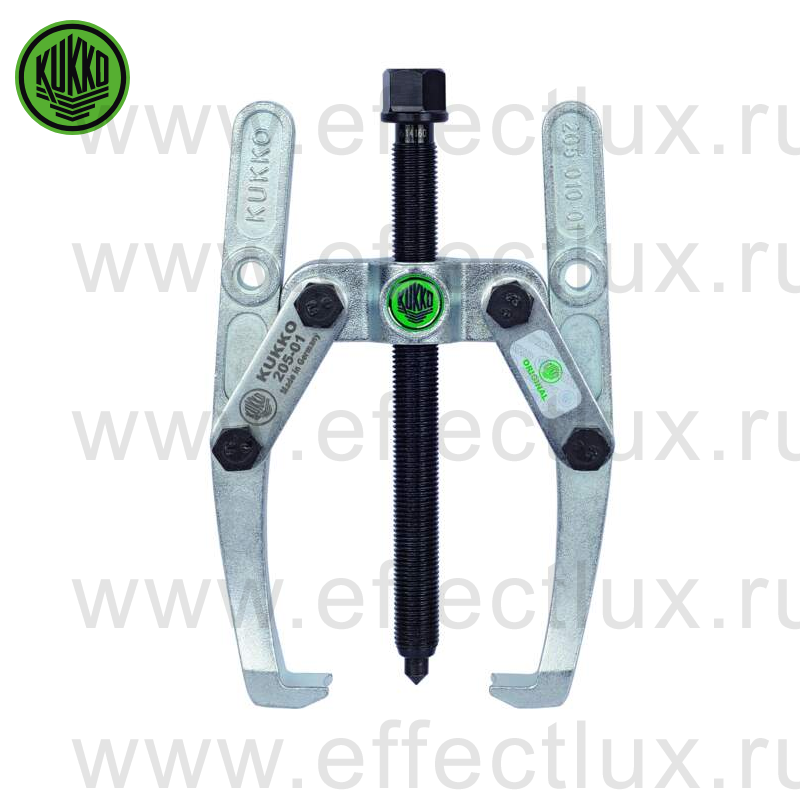 KUKKO Серия 205 Универсальный двух-захватный съёмник с шарнирными захватами и регулировкой глубины фиксации 150х18-150 мм. Артикул: 205-01
