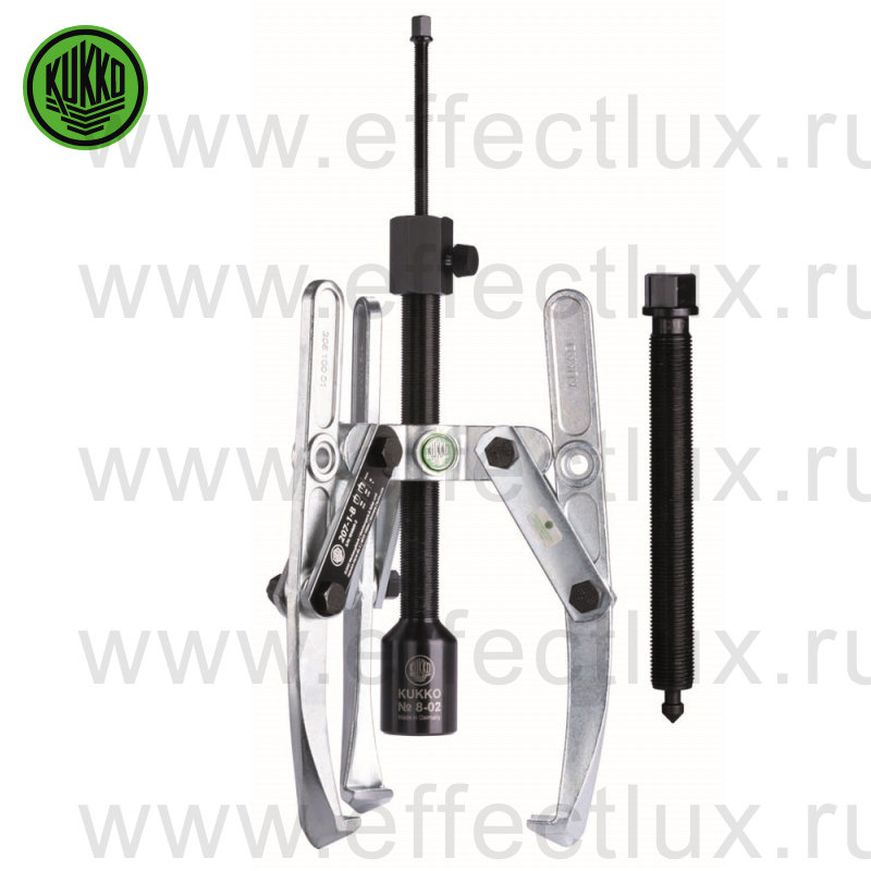KUKKO Серия 207-B Универсальный трёх-захватный съёмник с шарнирными захватами, регулировкой глубины фиксации и длинным гидравлическим шпинделем (включая механический шпиндель) 120х26-300 мм. Артикул: 207-02-B