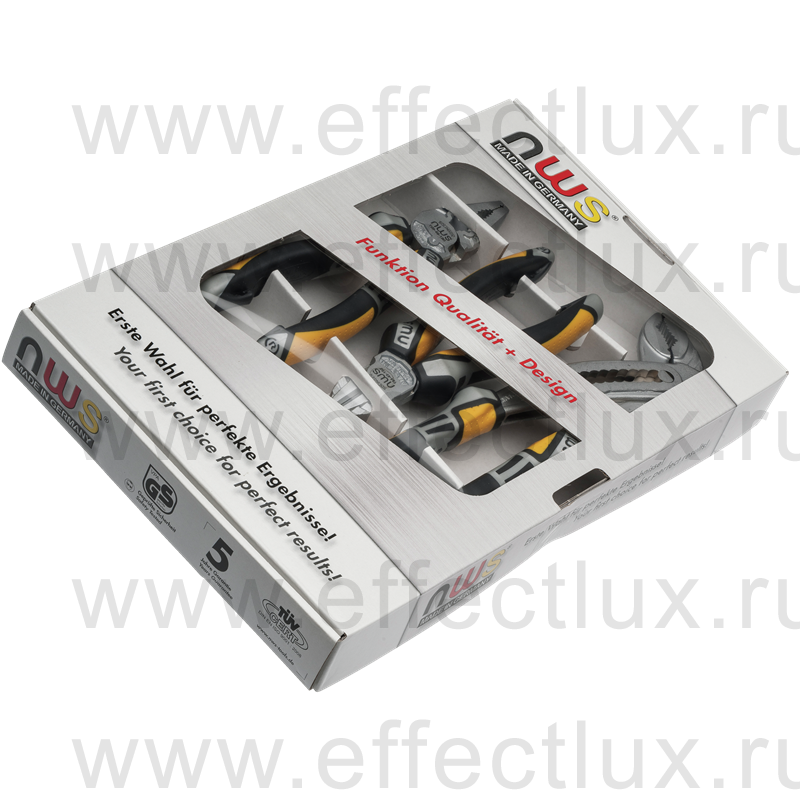Каталог > NWS Профессиональный ручной инструмент > Слесарный инструмент > Наборы инструмента и аксессуары > 788 Набор хромированного инструмента в картонной коробке: пассатижи 111-49-180, бокорезы 134-49-160, ключ 161-49-250