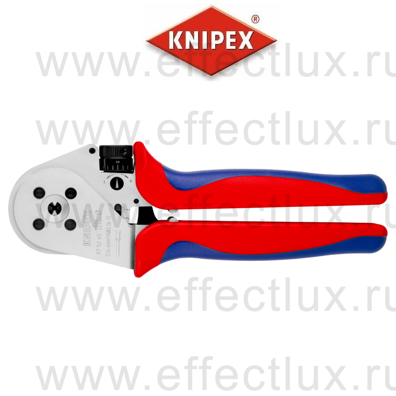 KNIPEX Пресс-клещи для тетрагональной опрессовки точеных контактов, без локатора, 0.14-6.0 мм² , max Ø 7.5 мм., длина 250 мм., хромированные