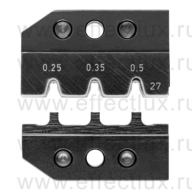 Каталог > KNIPEX® Ассортимент инструментов для профессионалов > KNIPEX Клещи для опрессовки > KNIPEX Инструмент для обжима системный и профили обжима для системного инструмента > KNIPEX Плашка опрессовочная: штекеры MQS, 0.25/0.35/0.5 мм², 3 гнезда KN-974927