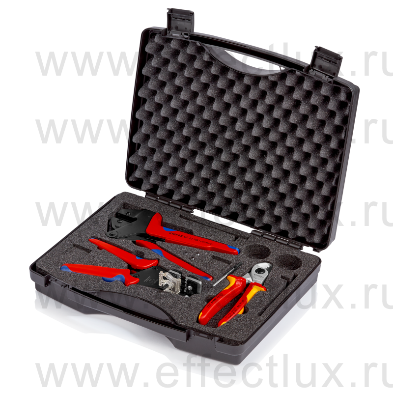 Каталог > KNIPEX® Ассортимент инструментов для профессионалов > KNIPEX Клещи для опрессовки > KNIPEX Наборы с инструментом для опрессовки и фотогальваники > KNIPEX Чемодан инструментальный для фотогальваники, 3 предмета, KN-121211/KN-9516165/KN-9743200 KN-979101