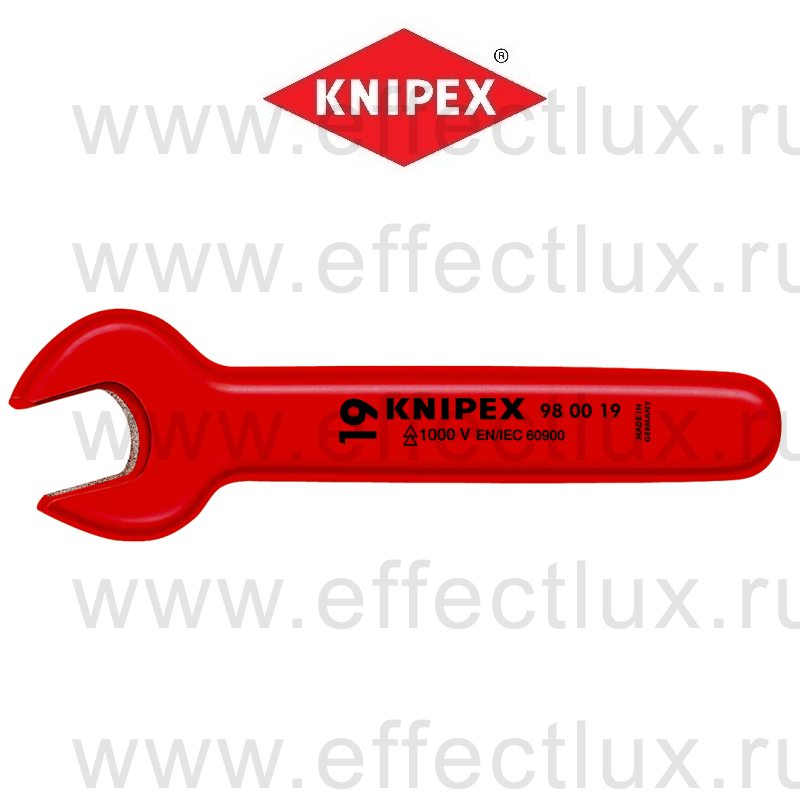 KNIPEX Серия VDE Ключ гаечный рожковый односторонний метрический S-19.0 мм. KN-980019