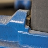 Подвижная губка снабжена внутренней гребенкой, которая предотвращает её соскальзывание и ослабление в зажатом состоянии. Для предотвращения повреждения заготовок на губки легко устанавливаются пластиковые накладки (поставляются отдельно). Для смазки двойного поджимного винта в корпусе струбцины имеется пресс-маслёнка. Губки выполнены из ковкого чугуна, который обладает повышенной прочностью при растяжении и высоким сопротивлением удару.