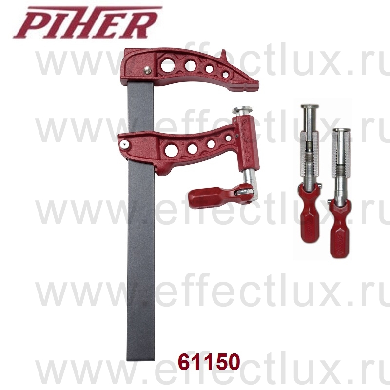Каталог > PIHER Зажимные приспособления > Струбцины F-образные > Piher 61150 Струбцина модель Maxi-R 150Х16 см, Усилие 10 000 N