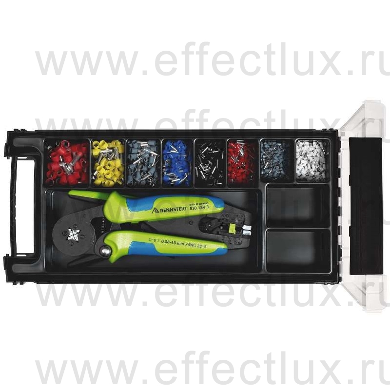 RENNSTEIG Набор инструмента для опрессовки изолированных контактных гильз в пластиковом органайзере RE-610913 / 610 913