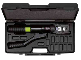 Основной прибор без опрессовочных плашек в кейсе. Прочные по конструкции гидравлические ручные пресс-клещи для опрессовки кабельных наконечников сечением до 185 мм², в пластиковом кейсе. Выбрать необходимые плашки для опрессовки можно ЗДЕСЬ.