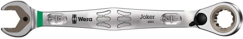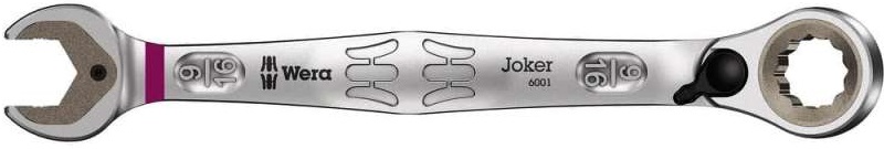 Набор высококачественных комбинированных гаечных ключей Wera: комбинированные гаечные ключи Joker с изогнутой трещоткой и переключателем реверса. С фиксирующей функцией на основе металлической пластины в рожковой части, которая снижает риск потерять винт или гайку. Имеющийся упор может предотвратить соскальзывание ключа вниз с головки винта и позволяет приложить большие усилия. Сменная металлическая пластина в рожковой части своими сверхтвердыми зубцами фиксирует винты и гайки и снижает риск их соскальзывания. Форма двойного шестигранника обеспечивает плотный обхват винта или гайки и тем самым снижает риск соскальзывания. Угол возврата всего 30° в рожковой части исключает потерю времени на перекидывание ключа при завинчивании. Конструкция реверсивной трещотки в накидной части ключа с необычайно тонким механизмом зацепления (80 зубцов) обеспечивает свободу работы даже в тесном пространстве. Точная даже на слух работа трещотки. Прочный стопор из двух элементов позволяет кроме того работать с экстремальными нагрузками. Наклон трещотки на 15° для уверенной работы с высокими моментами силы. Специальная форма кованого ключа обеспечивает передачу больших моментов силы и высокое сопротивление на изгиб. Изготовлен из высокопрочной хромо-молибденовой стали с никель-хромовым покрытием для отличной защиты от коррозии. С идентификатором инструментов "Take it easy": цветовая кодировка размера.