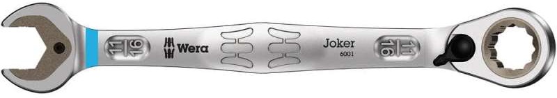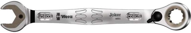 Набор высококачественных комбинированных гаечных ключей Wera: комбинированные гаечные ключи Joker с изогнутой трещоткой и переключателем реверса. С фиксирующей функцией на основе металлической пластины в рожковой части, которая снижает риск потерять винт или гайку. Имеющийся упор может предотвратить соскальзывание ключа вниз с головки винта и позволяет приложить большие усилия. Сменная металлическая пластина в рожковой части своими сверхтвердыми зубцами фиксирует винты и гайки и снижает риск их соскальзывания. Форма двойного шестигранника обеспечивает плотный обхват винта или гайки и тем самым снижает риск соскальзывания. Угол возврата всего 30° в рожковой части исключает потерю времени на перекидывание ключа при завинчивании. Конструкция реверсивной трещотки в накидной части ключа с необычайно тонким механизмом зацепления (80 зубцов) обеспечивает свободу работы даже в тесном пространстве. Точная даже на слух работа трещотки. Прочный стопор из двух элементов позволяет кроме того работать с экстремальными нагрузками. Наклон трещотки на 15° для уверенной работы с высокими моментами силы. Специальная форма кованого ключа обеспечивает передачу больших моментов силы и высокое сопротивление на изгиб. Изготовлен из высокопрочной хромо-молибденовой стали с никель-хромовым покрытием для отличной защиты от коррозии. С идентификатором инструментов "Take it easy": цветовая кодировка размера.