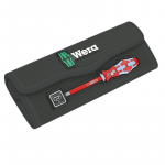 1 ручка-держатель 3817 VDE Kraftform для эргономичной работы. 7 сменных отвёрток VDE из нержавеющей стали, часть из них с зауженным рабочим концом (iS), что позволяет получить доступ к глубоко посаженным винтовым и пружинным элементам и работать с ними; с идентификатором инструментов Take it easy: цветовая кодировка профиля и лазерная гравировка размера для простого и быстрого отбора нужного инструмента. Инструменты проверены поштучно по стандарту IEC 60900. Поштучная проверка под напряжением 10000 В для безопасной работы на оборудовании с допустимым напряжением 1000 В. Инструменты Wera из нержавеющей стали прошли вакуумную закалку во льду и поэтому обладают необходимыми для работы характеристиками твёрдости и прочности. Отсутствуют какие-либо ограничения на их промышленное использование. В добротной поясной сумке. Сумка, снабжённая зоной на липучках с задней стороны, подходит для простого крепления, например, на стене, полке, инструментальной тележке и компонентах системы Wera 2go.