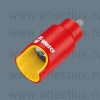 Отвёрточная головка VDE 3/8" с фиксирующей функцией для особенно комфортной работы с минимальным риском потерять винт до начала завинчивания. Повышенная безопасность за счёт использования жёлтого сердечника изоляции, который становится виден в случае возможного повреждения внешнего, красного слоя изоляции VDE. Поштучная проверка инструментов по стандарту IEC 60900 под напряжением 10000 вольт для безопасной работы под допущенным напряжением 1000 вольт.