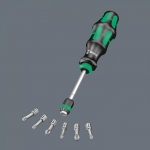 Компактные инструменты Wera подходят одновременно для завинчивания как в ручном, так и машинном режимах. Система "Одна ручка - много насадок" компактной конструкции с рабочими концами разных профилей, размещенная в компактном футляре, делает работу мобильной и гибкой. Подходит для битов с шестигранным хвостовиком 1/4" по стандарту DIN ISO 1173-C 6,3 и E 6,3 (ISO 1173) и с типами хвостовика Wera 1 и 4. С переходником, выдвижным стержнем, патроном Rapidaptor. Многокомпонентная ручка Kraftform с защитой от перекатывания, для особенно эргономичного завинчивания. Встроенный магазин для хранения битов. Данный набор заменяет набор из шести отверток и снижает до минимума необходимый комплект. Утапливаемый в ручке выдвижной стержень с быстрозажимным патроном позволяет легко обращаться с инструментом даже в тесном пространстве, если стержень не выдвинут. Рабочий стержень легко выдвигается простым нажатием на стопорное кольцо. После этого ручку-держатель можно использовать как полноценную отвёртку. Выдвижной стержень можно извлечь и использовать в качестве адаптера с машинным приводом или вернуть в исходное положение. В практичной поясной сумке.