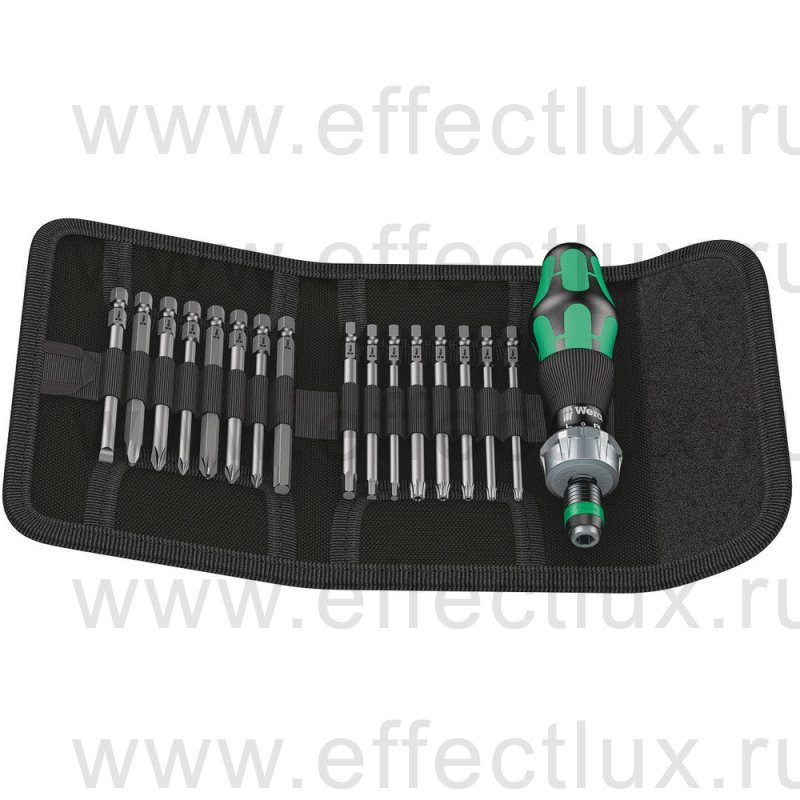 WERA Kraftform Kompakt 60 RA, Набор бит с отвёрткой бито-держателем с патроном Rapidaptor, 17 предметов