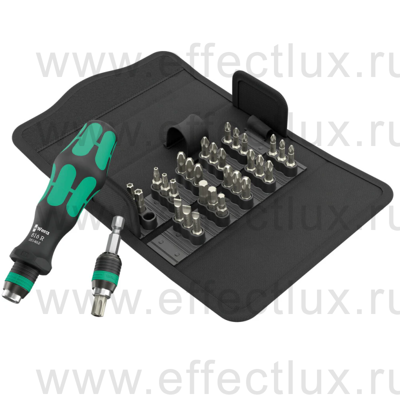 Набор из 32 предметов, ручка-держатель 816 R Kraftform с быстро-зажимным патроном "Rapidaptor" и многокомпонентной ручкой Kraftform для мало-утомительной работы. универсальный держатель Rapidaptor с сильным постоянным магнитом, который удерживает даже большие и тяжёлые винты. С 30 битами вы будете готовы почти к любой ситуации. В добротном мягком футляре; подходит для системы Wera 2go.