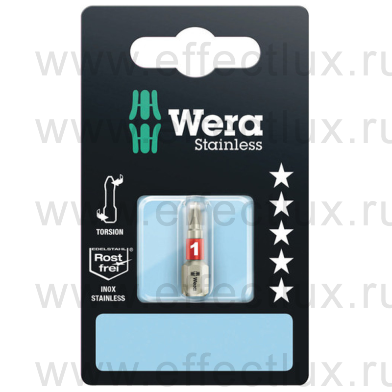 WERA 3851/1 TS SB SiS PH1 Бита торсионная в SB упаковке для винтов Phillips, из нержавеющей стали, 1/4" C6.3, PH 1 x 25 мм. WE-073610