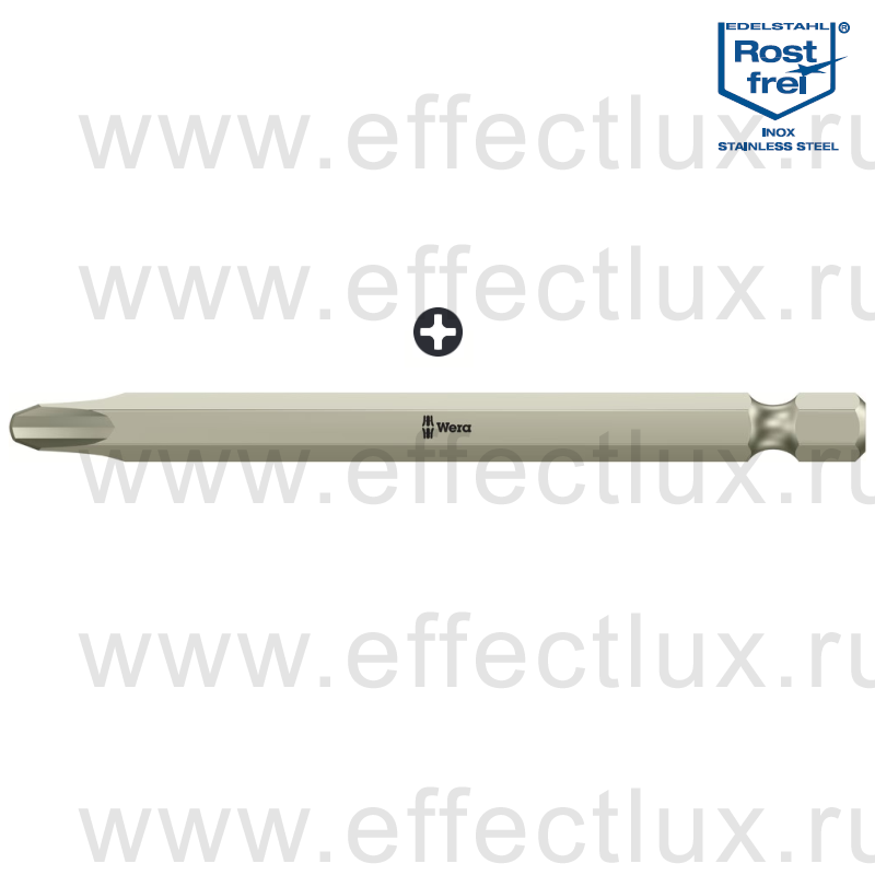 Высококачественные крестовые биты из специальной стали. Инструменты Wera Edelstahl изготавливаются из специальной стали, что исключает неприятное распространение контактной ржавчины. Шестигранный хвостовик 1/4", подходит для держателя по стандарту DIN ISO 1173-F 6,3.