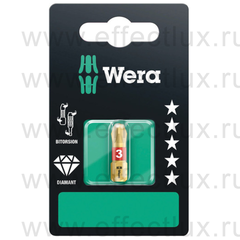 WERA 851/1 BDC SB SiS PH2 Бита торсионная для винтов Phillips в SB упаковке, алмазное напыление, 1/4" C6.3, PH 3 x 25 мм. WE-073334