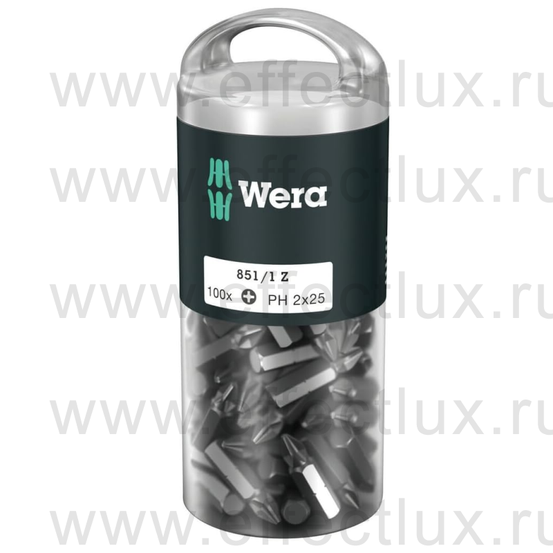 WERA 851/1 Z DIY 100 SiS PH2 Набор бит универсальных для винтов Phillips в пластиковой тубе, вязко-твёрдые, 1/4" C6.3, 100 х PH 2 x 25 мм. WE-072441