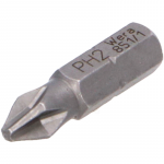 Биты Phillips, закалённые до вязкой твёрдости, для универсального применения. Шестигранный хвостовик 1/4", подходит для держателя по стандарту DIN ISO 1173-D 6,3. Закаленные до вязкой твердости насадки для твердых условий завинчивания, например, в жесть или металл. При этом винт в заданной резьбе сначала перемещается равномерно. При касании головки винта поверхности материала внезапно возникают большие пики усилия, которые воздействую на винт и инструмент. Если насадка слишком твердая, она может разрушиться. Насадки Wera, закаленные до вязкой твердости, препятствуют преждевременному разрушению ведомого наконечника.