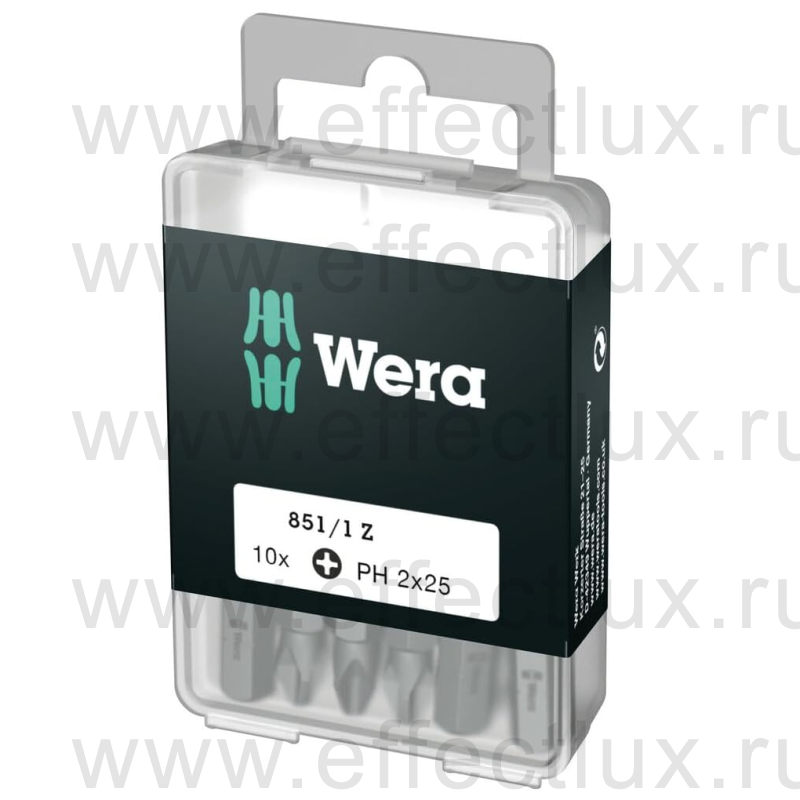 WERA 851/1 Z DIY SiS 10 PH2 Набор бит универсальных для винтов Phillips, вязко-твёрдых, 1/4" C6.3, 10 х PH 2 x 25 мм. WE-072401