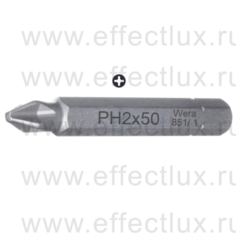WERA 851/1 Z PH Бита универсальная для винтов Phillips, вязко-твёрдая, 1/4" C6.3, PH 2 x 50 мм. WE-056520