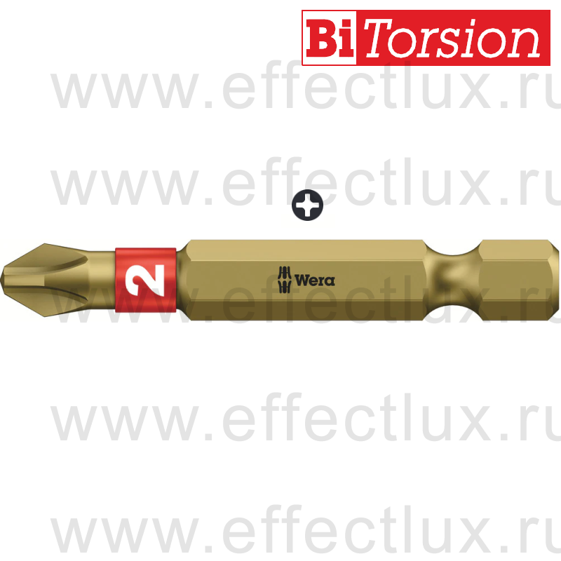 WERA 851/4 BTH PH2 Бита торсионная для винтов Phillips, сверхтвёрдая, 1/4" E6.3, PH 2 x 50 мм. WE-059542