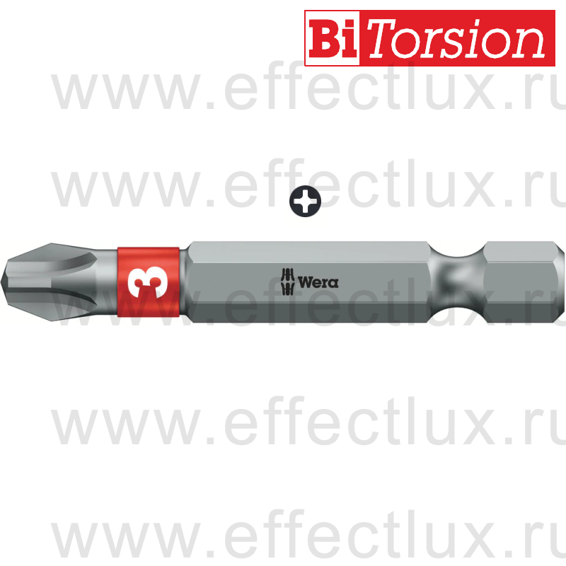 WERA 851/4 BTZ PH3 Бита торсионная для винтов Phillips, вязко-твёрдая, 1/4" E6.3, PH 3 x 50 мм. WE-059554