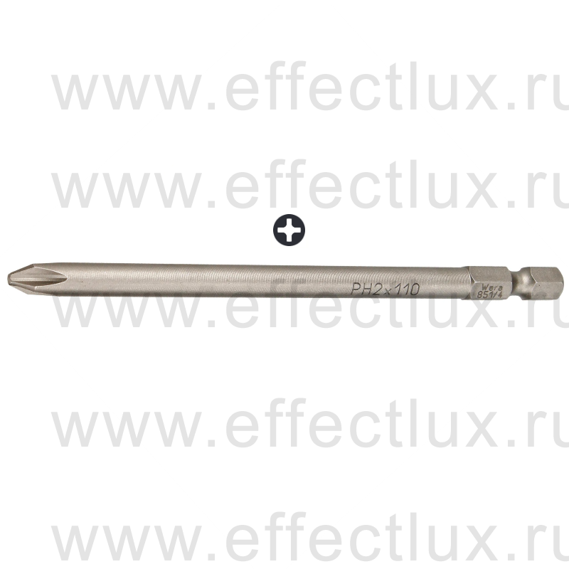 WERA 851/4 Z PH Бита универсальная для винтов Phillips, вязко-твёрдая, 1/4" E6.3, PH 2 x 110 мм. WE-059780