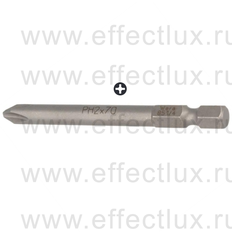 WERA 851/4 Z PH Бита универсальная для винтов Phillips, вязко-твёрдая, 1/4" E6.3, PH 2 x 70 мм. WE-059770