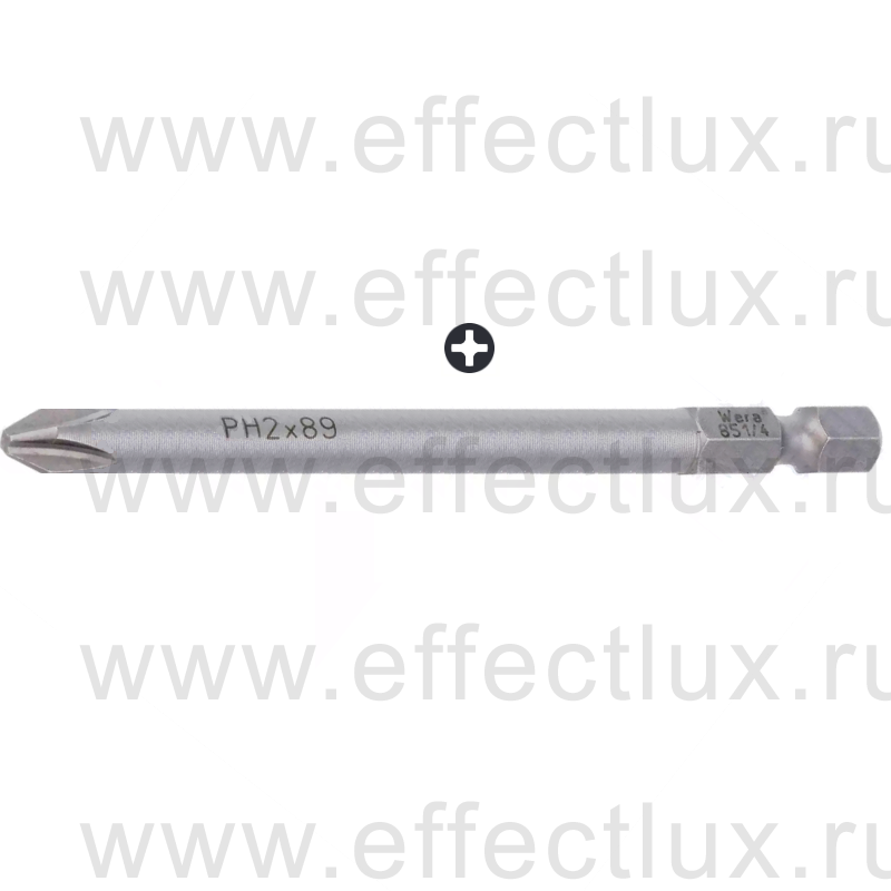 WERA 851/4 Z PH Бита универсальная для винтов Phillips, вязко-твёрдая, 1/4" E6.3, PH 2 x 89 мм. WE-059775