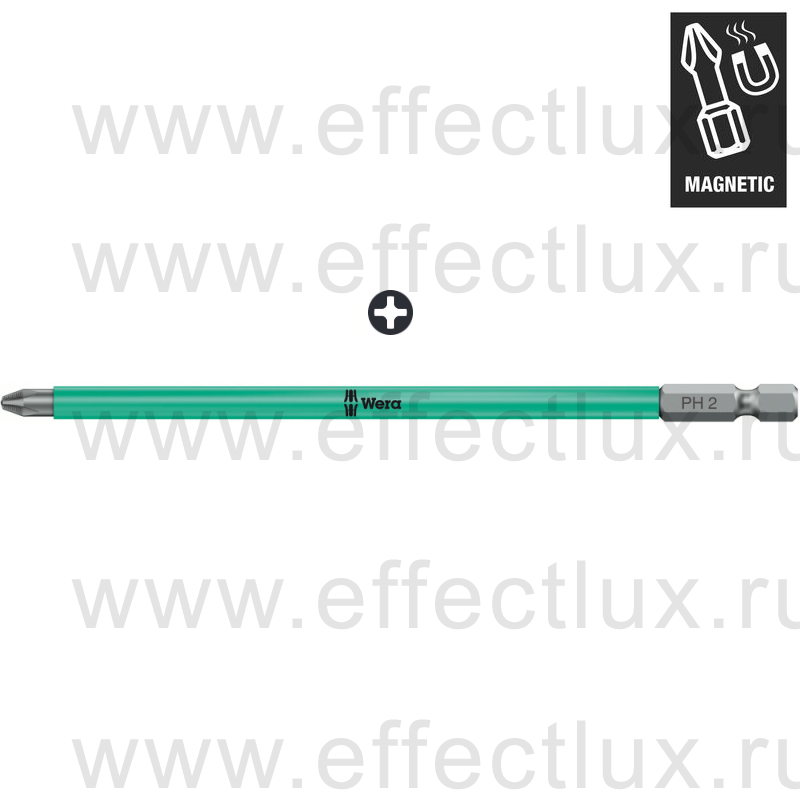 WERA 853/4 ACR® SL PH Насадка с магнитом в пластиковой оболочке для винтов Phillips вязко-твёрдая 1/4" E6.3, PH 2 x 150 мм. WE-203913