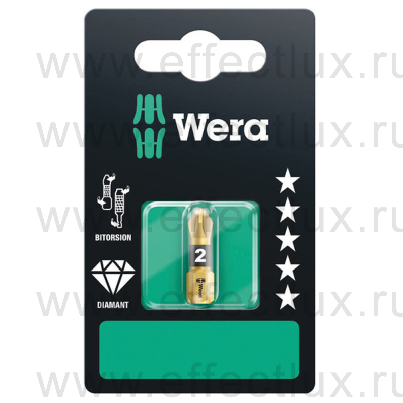 WERA 855/1 BDC SB SiS PZ2 Бита торсионная для винтов Pozidriv в SB упаковке, алмазное напыление, 1/4" C6.3, PZ 2 x 25 мм. WE-073337