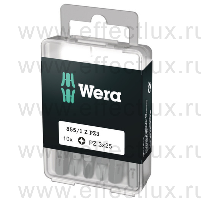 WERA 855/1 Z DIY SiS 10 PZ3 Набор бит универсальных для винтов Pozidriv, вязко-твёрдых, 1/4" C6.3, 10 х PZ 3 x 25 мм.