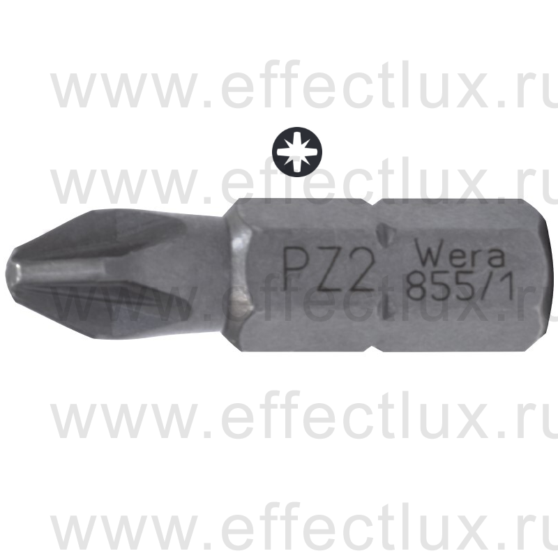 WERA 855/1 Z PZ Бита универсальная для винтов Pozidriv, вязко-твёрдая, 1/4" C6.3, PZ 2 x 25 мм.
