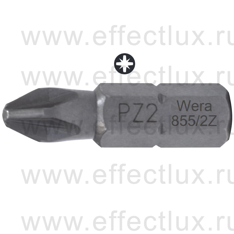 WERA 855/2 Z PZ2 Бита универсальная для винтов Pozidriv, вязко-твёрдая, 5/16" C 8, PZ 2 x 32 мм. WE-058010