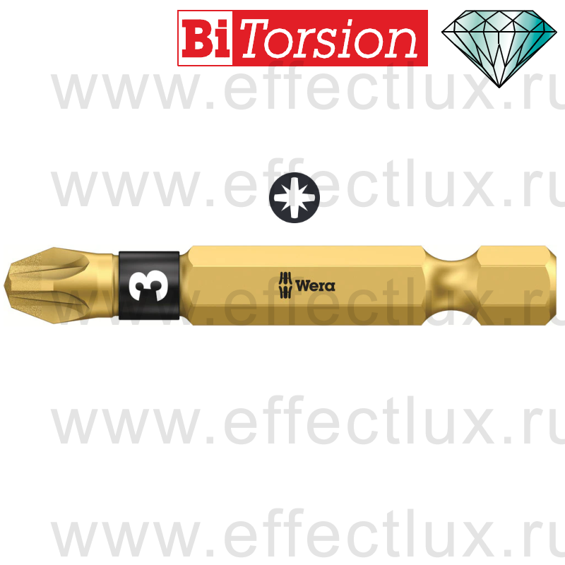 WERA 855/4 BDC PZ3 Бита торсионная для винтов Pozidriv, алмазное напыление, 1/4" E6.3, PZ 3 x 50 мм. WE-059904