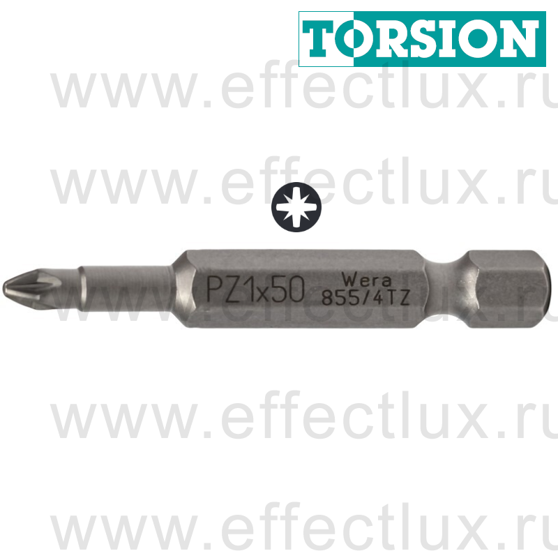 WERA 855/4 TZ PZ1 Бита торсионная для винтов Pozidriv, вязко-твёрдая, 1/4" E6.3, PZ 1 x 50 мм.