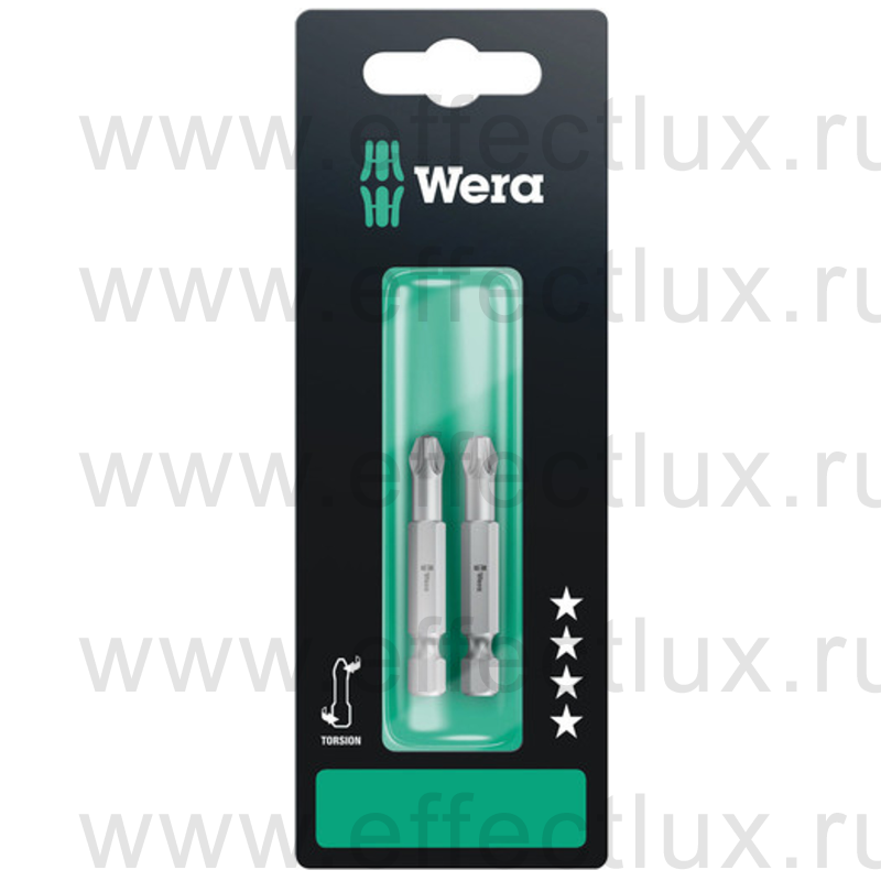 WERA 855/4 TZ SB PZ3 Биты торсионные для винтов Pozidriv в SB упаковке, вязко-твёрдые, 1/4" E6.3, 2 х PZ 3 x 50 мм.