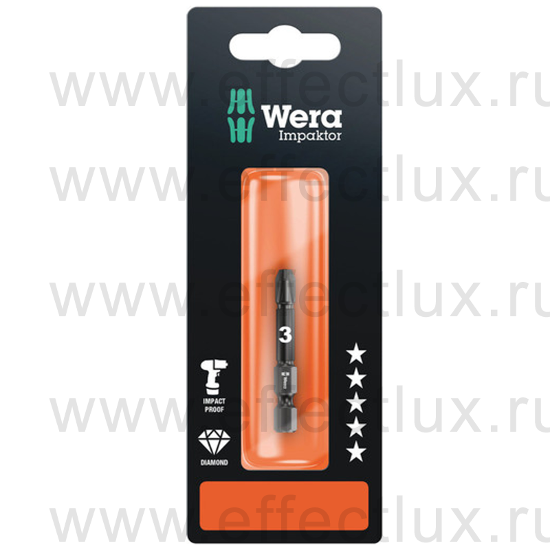 WERA 855/4 IMP DC SB SiS PZ3 Impaktor Бита ударная с алмазным напылением наконечника в SB упаковке, 1/4" E6.3, 1xPZ3x50 мм. WE-073962